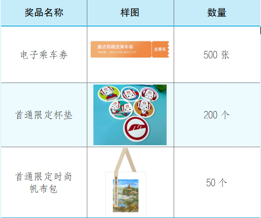 (3)在本次开放期内,投放电子乘车劵500张,杯垫200个,时尚帆布包50个。以上每种奖品每人限兑1份,兑完为止。
