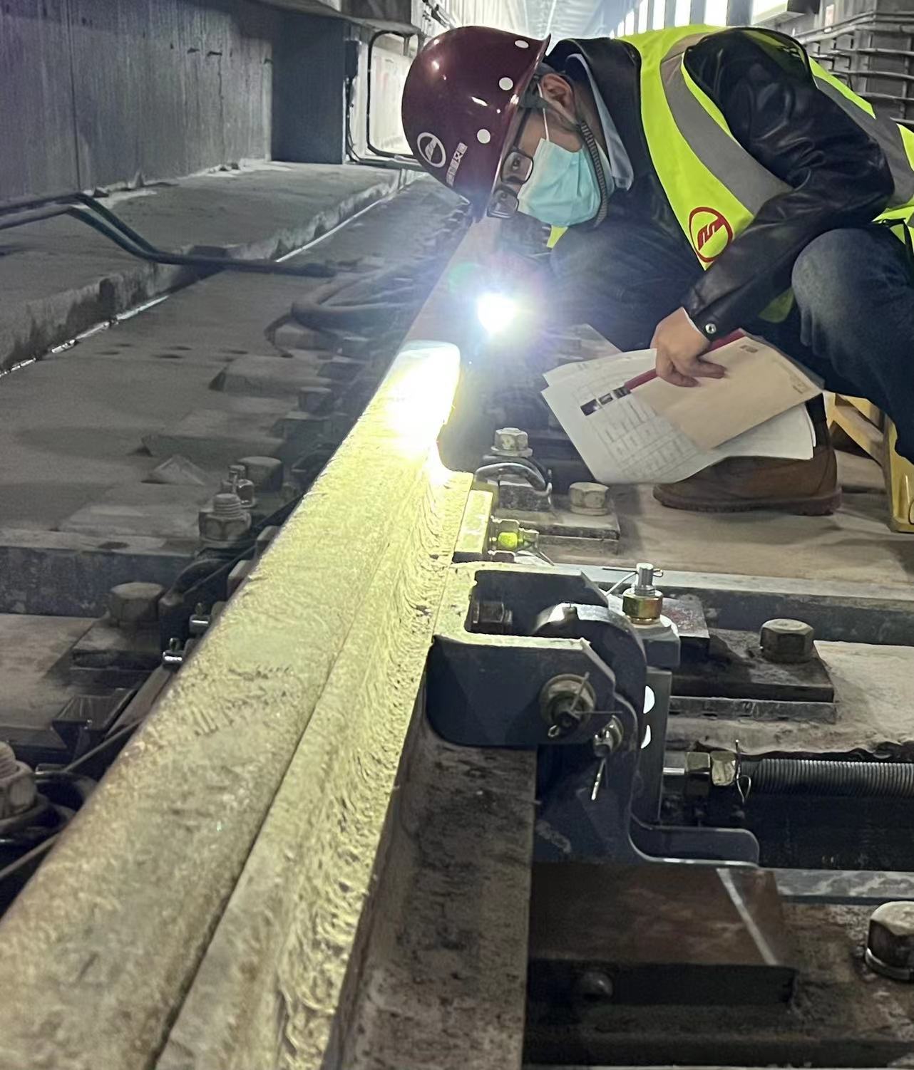 在线路建设接管期间,陈西楼坚持深入基层,指导线路专业工作,对正线80余公里线路反复巡查,重点开展了轨道几何尺寸检查、焊缝检查、防汛排查、A类问题排查等专项排查,结合2021年工务设备年检工作,采集整理数据超10万组,形成了《正线设备年检成果报告》《小海停车场轨道设备评估报告》,建立全线轨道设备基础台账和设备病害库,并以此次检查结果为导向,制定了设备履历表及后续定期检查的评定标准。