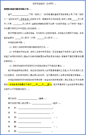 1、如果采用投标保函递交投标保证金,①是否仅在资格审查部分提供投标保函复印件即可,无需提供原件?②银行只能开具闭口保函,由于招标文件提供的是没有具体日期的开口保函,请问,能否在保函内增加“,本保函有效期最迟不晚于 年 月 日止”字样,如下图标黄部分所示?