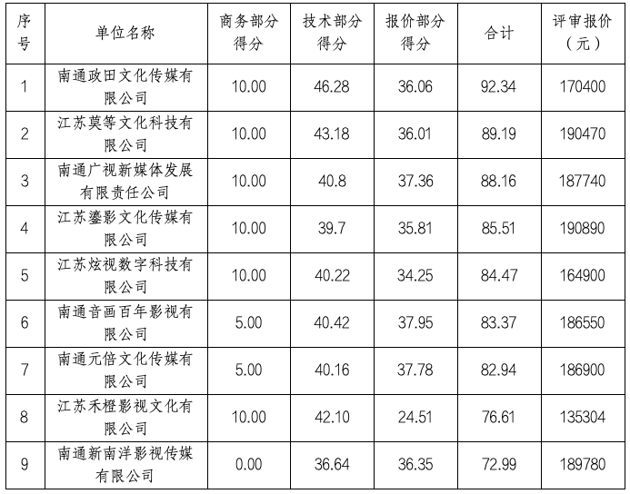 南通政田文化传媒有限公司,中标价格:170400元。