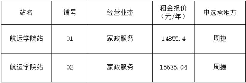 根据有关法律、法规、规章和该项目招租文件的规定,南通轨道交通1、2号线一期工程便民用房出租项目(2026年第一期)的评审工作已经结束,中选承租方已经确定,具体如下: