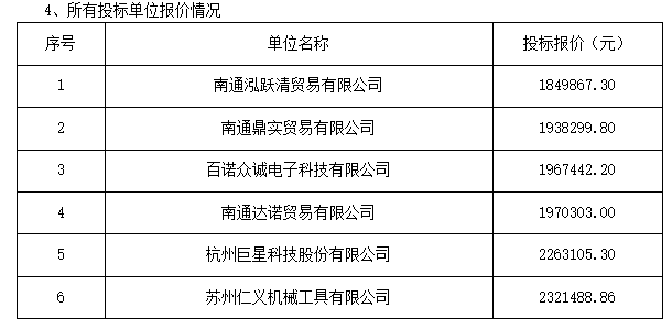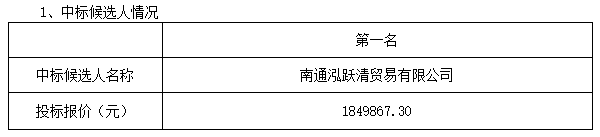 5、拟确定中标候选人:南通泓跃清贸易有限公司